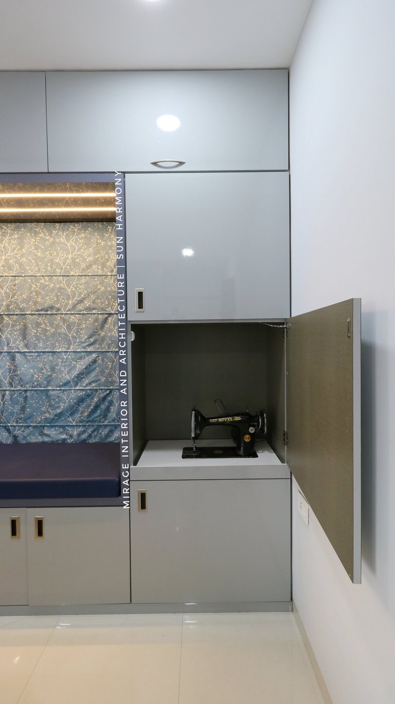 The mandir, designed with a unique blend of functionality and aesthetics, serves as an innovative storage solution that seamlessly integrates into the kitchen. Its custom-built features are tailored to meet the needs of modern living while maintaining the sacred essence of a traditional mandir. This thoughtful design allows for easy access to kitchen essentials, all while preserving the spiritual ambiance that a mandir embodies. The storage compartments are cleverly concealed, ensuring that the area remains organized and visually pleasing. With its elegant appearance, the mandir not only enhances the kitchen's overall décor but also acts as a tranquil space for reflection and devotion, bridging the gap between everyday life and spiritual practice.